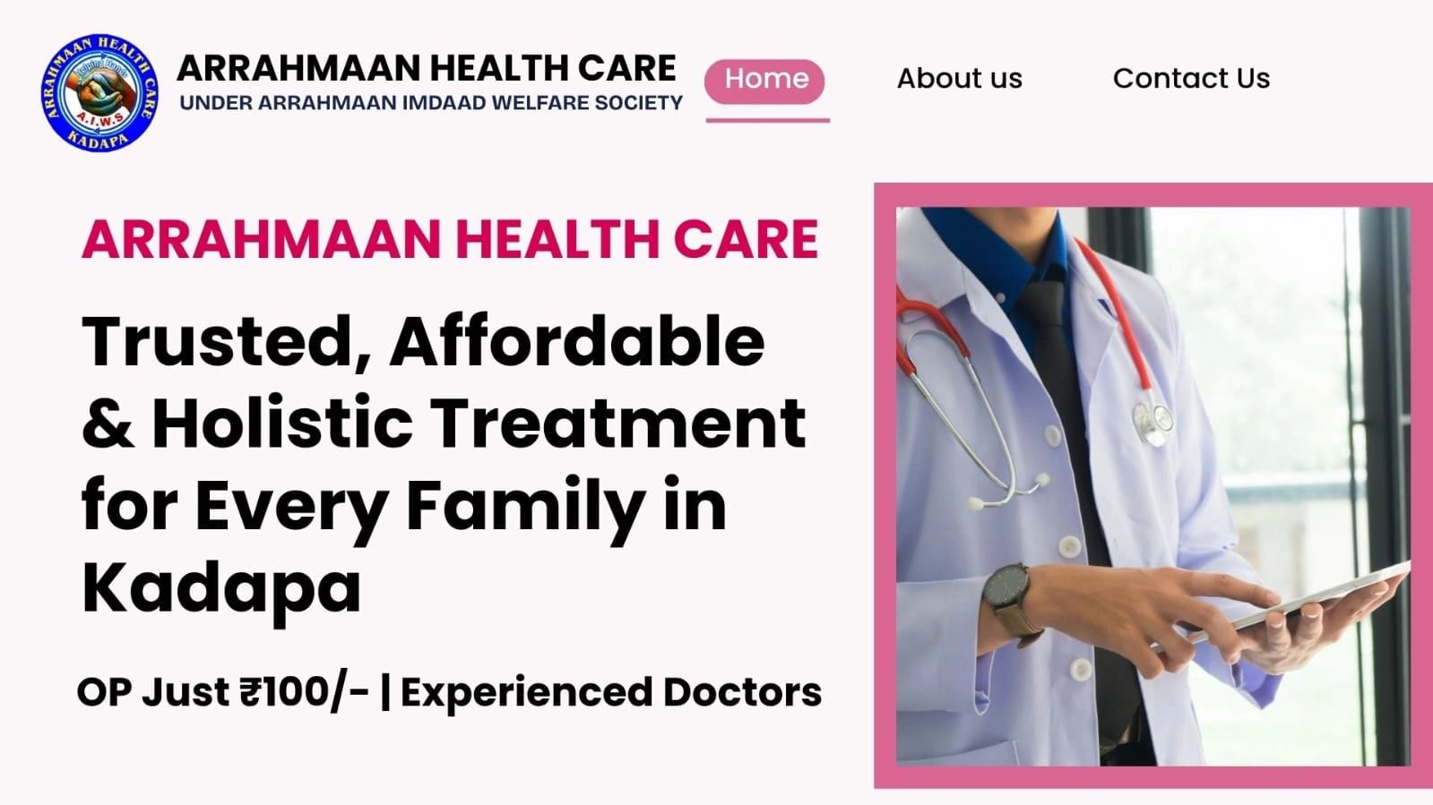 Arrahmaan Clinic Kadapa Under Arrahmaan Imdaad Welfare Society **Quality Healthcare at Affordable Prices at Arrahmaan Clinic** By the grace of the Almighty Allah, "Arrahmaan health care hospital" was inaugurated on February 1, 2024. It provides quality healthcare at affordable prices to the people of Kadapa, irrespective of caste and religion.